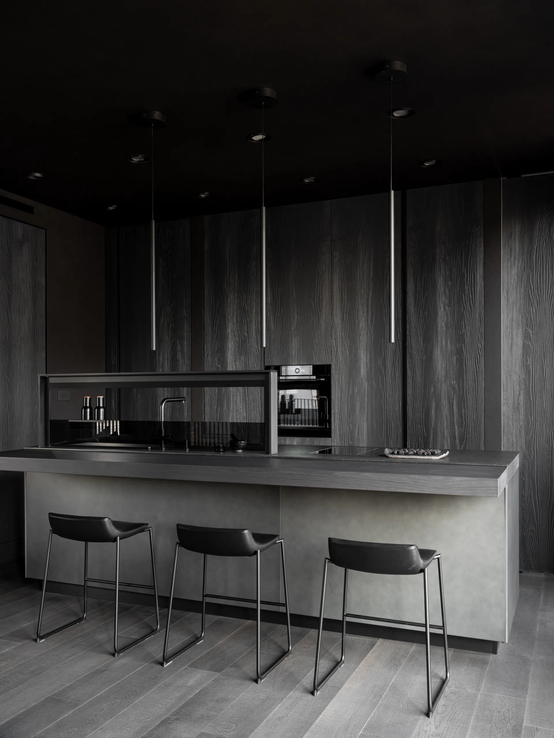 Situato lungo la Savvinskaya Embankment, con una vista spettacolare sul fiume Moscova, questo appartamento total black firmato dai designer Tatyana Alenina e Vladimir Krasilnikov rappresenta un esempio di architettura senza confini, dove minimalismo, purezza delle linee e sofisticato gioco dei materiali diventano protagonisti assoluti. Realizzato in collaborazione con il dealer Krassky, il progetto traduce la visione dei suoi autori in un ritratto autentico del loro mondo interiore.